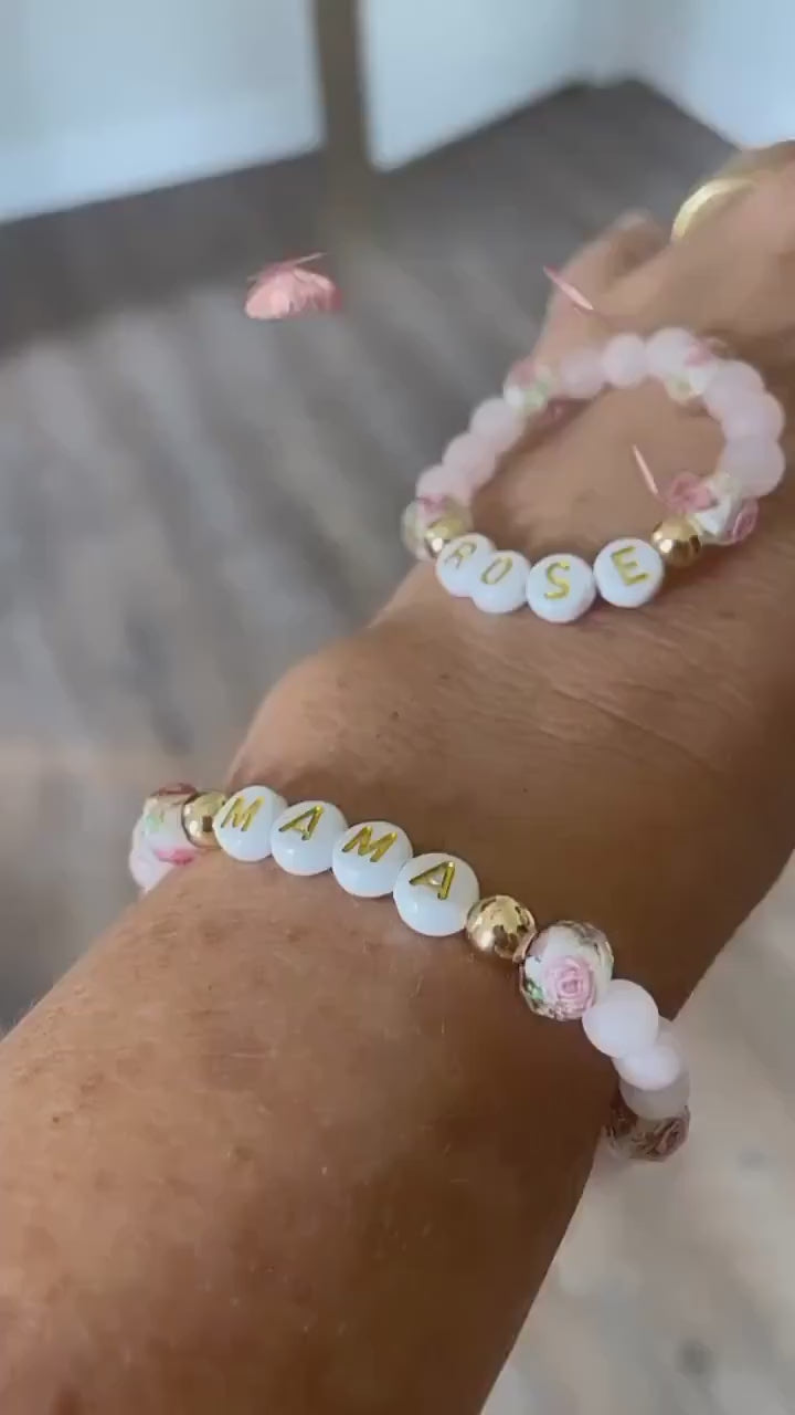 Celebrate the special bond between you and your little one with this adorable Rose Quartz Matte Gemstone Bracelet Set! Featuring sparkly rose crystal flower beads, 2 gold-plated accents, and customizable gold letter beads, this set is a heartfelt accessory that beautifully symbolizes love, protection, and joy.